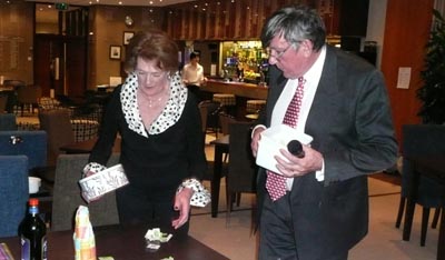 07. Marion winning a prize in the raffle which Roger organised